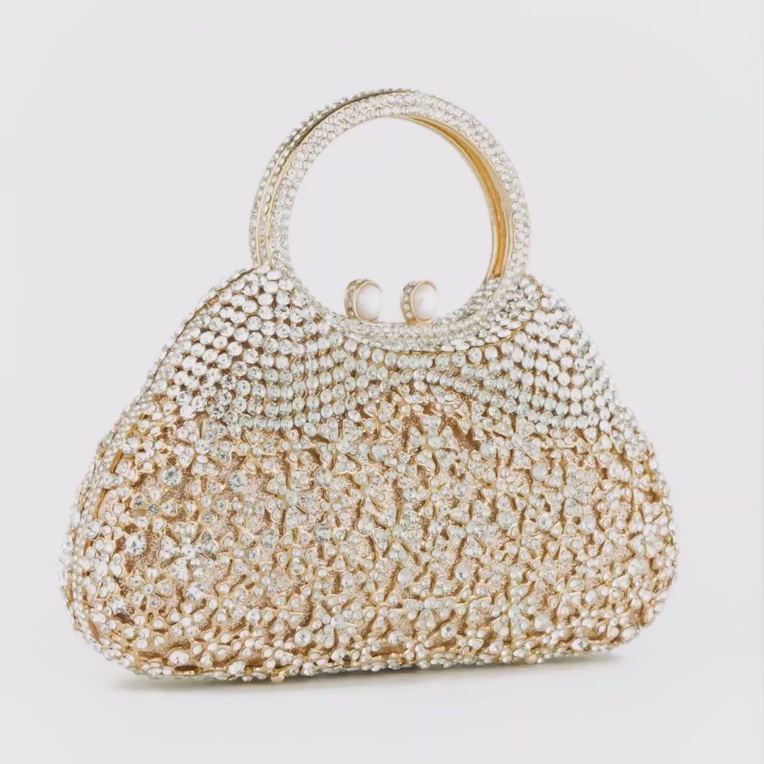 La nostra borsa Glistening Glamor incarna il meglio dell'extralusso. Realizzata in poliestere di alta qualità con fodera in pelle PU, questa bellissima borsa presenta un manico rotondo & un coperchio tempestato di strass scintillanti in un grazioso display floreale.